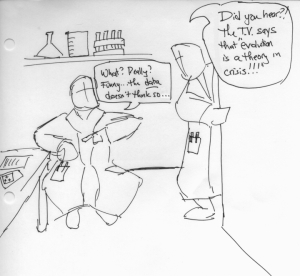 Let me end with a cartoon I drew as I listened to Behe and Petto.