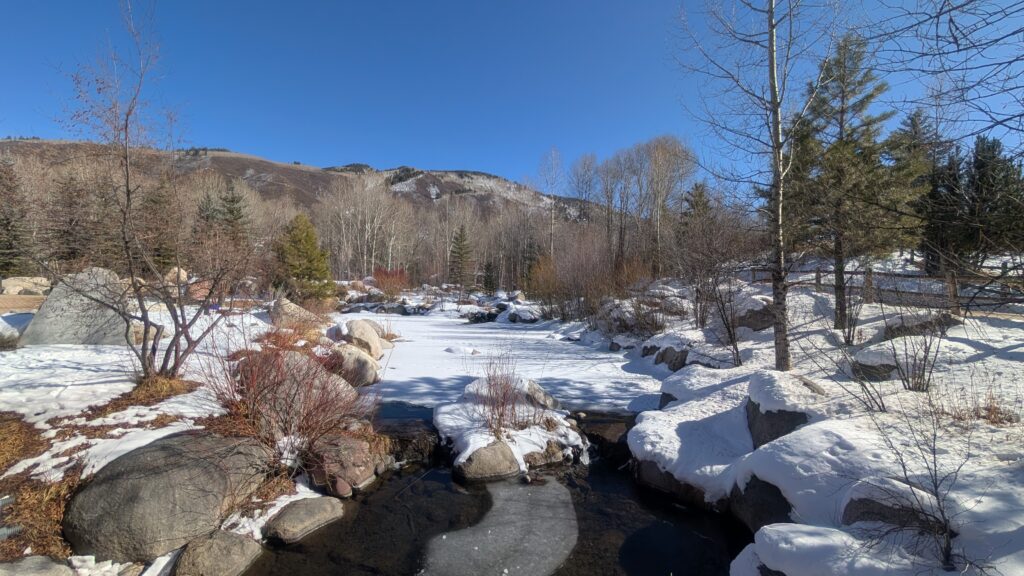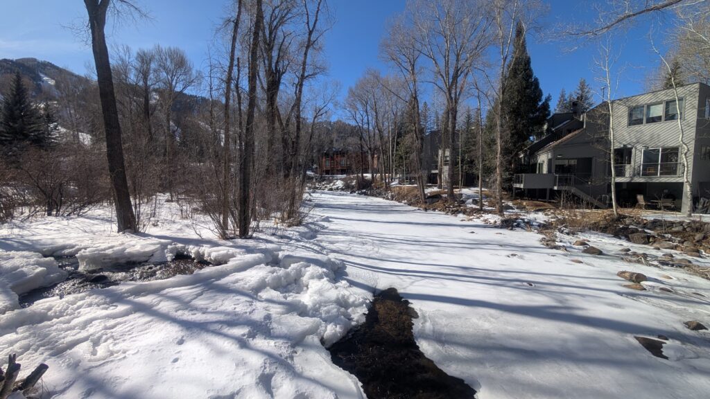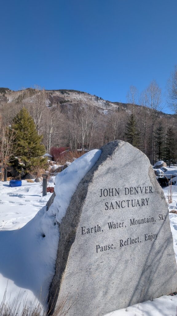 I spent time on Sunday walking around Aspen some more, working on my talk and funding proposal drafts, and checking out a very nice bookstore and cafe near downtown. It was a beautiful day to wander and get some exercise. I did a little exploring closer to the outskirts of the busy downtown area. In particular, I wandered into the John Denver Sanctuary and followed some of the trails through the woods and neighbourhoods.